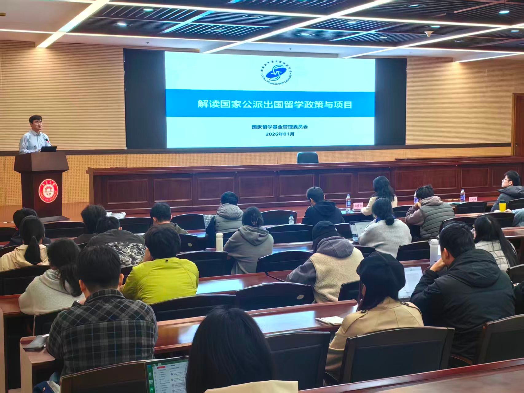 為幫助師生準確理解國家公派出國留學政策導向,進一步拓寬國際化人才培養(yǎng)渠道,我校特邀國家留學基金管理委員會美大事務部主任劉超一行來校,開展國家公派出國留學專題宣講與指導活動。