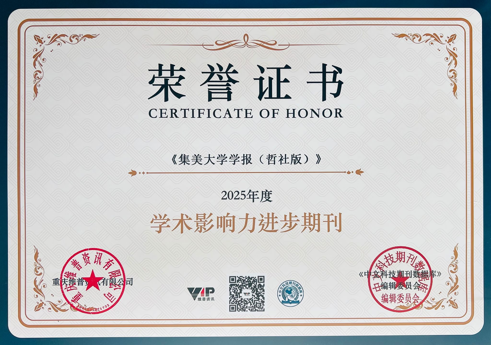 近日,重慶維普資訊有限公司、《中文科技期刊數據庫》編輯委員會發布 2025 年度期刊評選結果,《集美大學學報(哲社版)》獲評 “學術影響力進步期刊”。