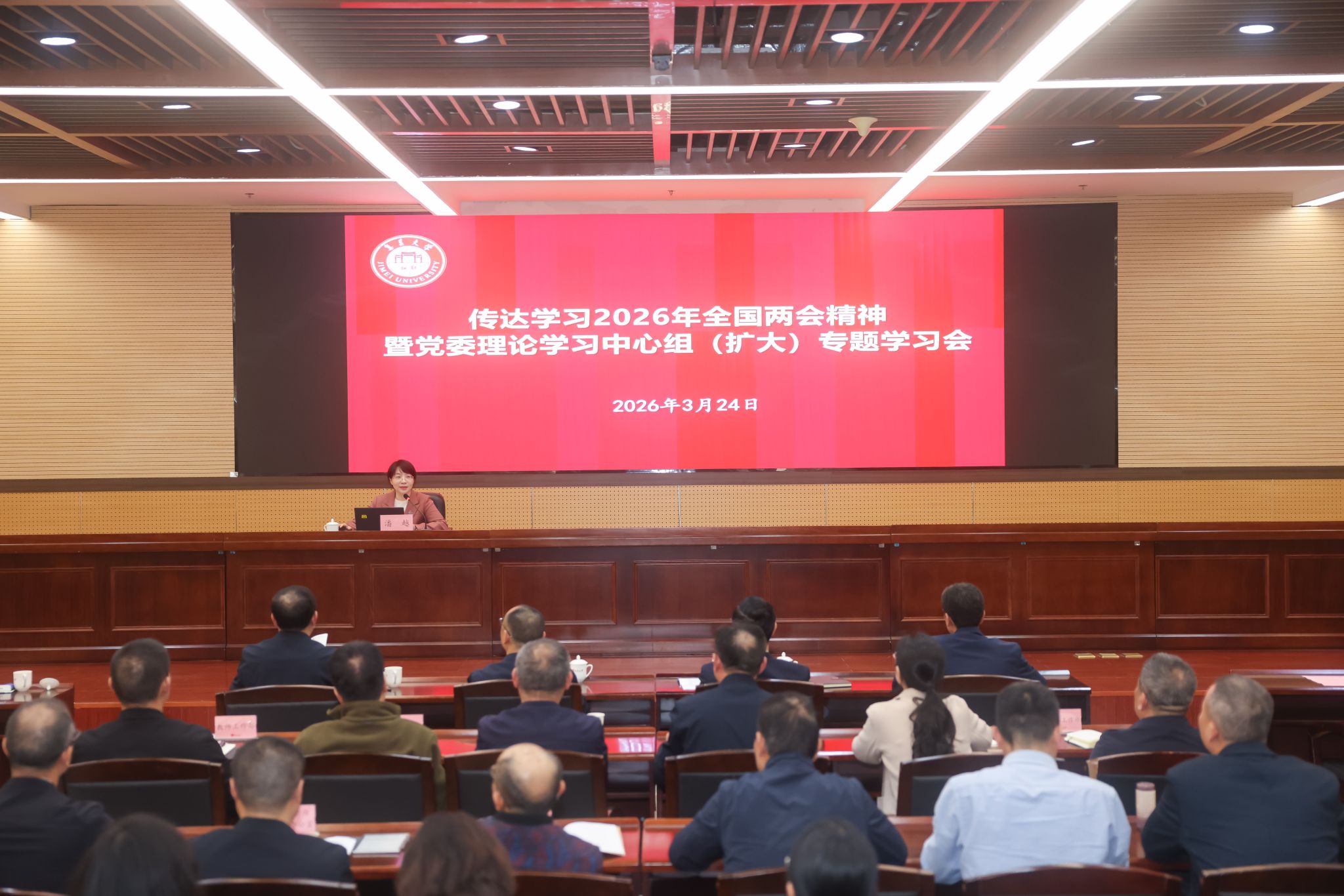 3月24日下午,我校召開黨委理論學習中心組(擴大)學習會,邀請第十四屆全國人大代表、廈門大學社會科學研究處處長潘越教授作傳達學習2026年全國兩會精神專題輔導報告。校黨委理論學習中心組成員,機關部處、教輔機構及各學院副處級及以上干部參加會議,會議由校黨委副書記鄭志謙主持。