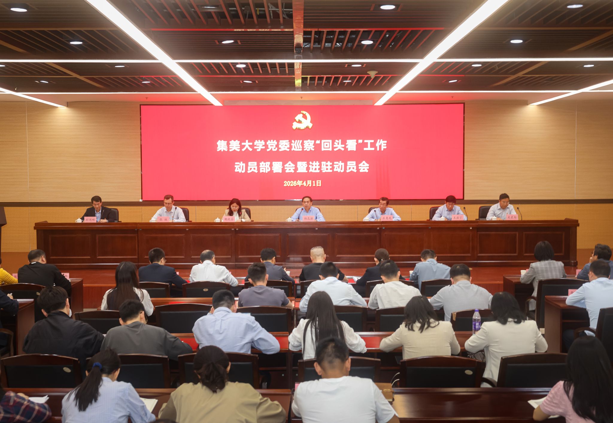 4月1日上午,校黨委召開巡察“回頭看”工作動員部署會暨進駐動員會。校黨委巡察工作領導小組成員、巡察組及巡察辦全體成員,體育學院黨委、財經學院黨委、港口與海岸工程學院黨委班子成員、科級干部、黨支部書記、系(室)主任、師生代表等參加會議。