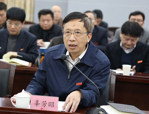 校黨委書記辜芳昭從嚴(yán)抓思想教育、嚴(yán)抓制度建設(shè)、嚴(yán)抓“一把手”、嚴(yán)抓查處、嚴(yán)抓責(zé)任落實、嚴(yán)抓意識形態(tài)工作等六個方面就我校黨委落實全面從嚴(yán)治黨主體責(zé)任和意識形態(tài)工作責(zé)任制情況向檢查組作了匯報。