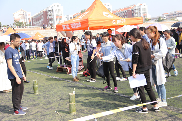 啟動儀式主要分為主題表演和主題游戲兩個部分。在主題表演環節中,校學生丑小鴨時裝社的同學們身著運動服裝,以走秀的形式為大家演繹了參與戶外體育運動的青春魅力;校學生會舞蹈隊的同學用改編的集美大學“三走”主題曲《大王叫我來三走》和自己編排的舞蹈帶領同學進行運動前的熱身。在主題游戲環節中,校學生會同學策劃了“我與團團合個影”活動。