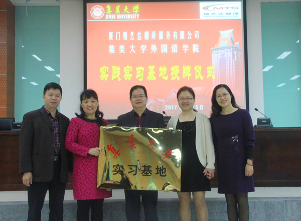比賽前,外國語學院與廈門精藝達翻譯服務有限公司進行了校企雙方實踐實習基地授牌儀式。雙方表示,將遵循共贏合作、互惠互利原則,共同培養應用型高素質翻譯人才。