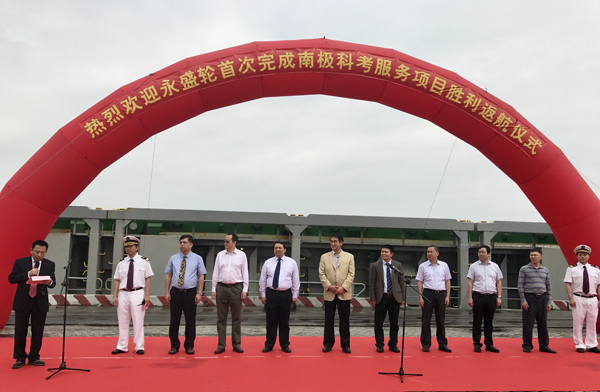 5月2日上午,中遠海運特種運輸股份有限公司永盛輪首次完成南極科考服務項目勝利返航歡迎儀式在廈門國貿碼頭舉行。校黨委常委、副校長于洪亮,以及航海學院師生代表參加了歡迎儀式,并在永盛輪船長、輪機長、政委的陪同下登上船舶參觀交流,了解船舶風貌、文化建設及南極項目的航行情況。
