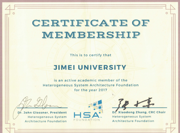 在近日于廈門召開的2017異構計算標準暨國際人工智能大會上,我校獲準成為全球異構系統(tǒng)架構(HSA)聯(lián)盟正式會員(Academic Level)并接受了聯(lián)盟頒發(fā)的證書。
