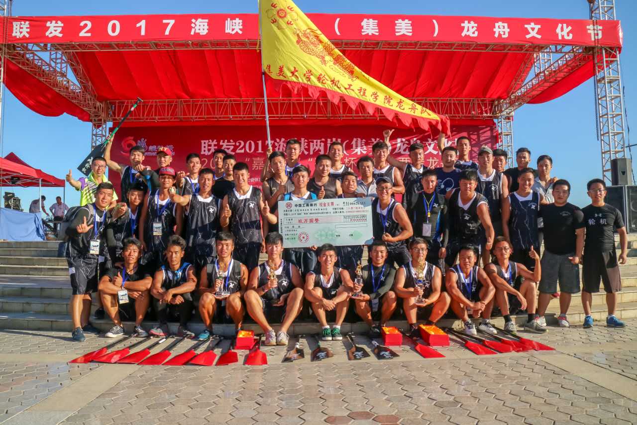 我校選派的集美大學龍舟隊男隊、集美大學龍舟隊女隊、集美大學航海學院龍舟隊、集美大學輪機工程學院龍舟隊、集美大學誠毅學院男子龍舟隊、集美大學誠毅學院女子龍舟隊等6支隊伍參加了200米、500米直道賽和中國龍舟拔河公開賽(集美站)的比賽。來自兩岸三地的近1500余名龍舟好手在風景如畫的集美龍舟池上演了一場水上爭霸戰。集美大學龍舟隊女隊在500米直道競速決賽“敬賢杯”爭奪賽率先沖出,并一路領先,最終經過七輪比拼將“敬賢杯”收入囊中。集美大學輪機工程學院龍舟隊也不負眾望,獲得了“嘉庚杯”第二名的好成績,其他各支參賽隊也均有不俗表現。