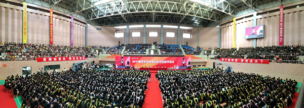 6月22日上午,我校舉行2017屆學生畢業典禮暨學位授予儀式。校領導,學校辦公室、宣傳部、學生處、教務處、研究生處、校團委、選培辦等部門負責人,各學院相關人員及畢業生家長等4600多人參加典禮。畢業典禮由校黨委副書記鄭志謙主持。