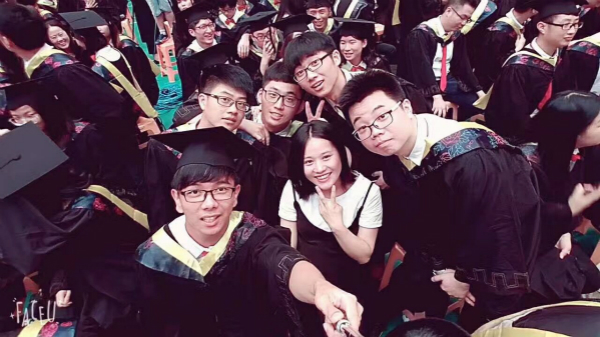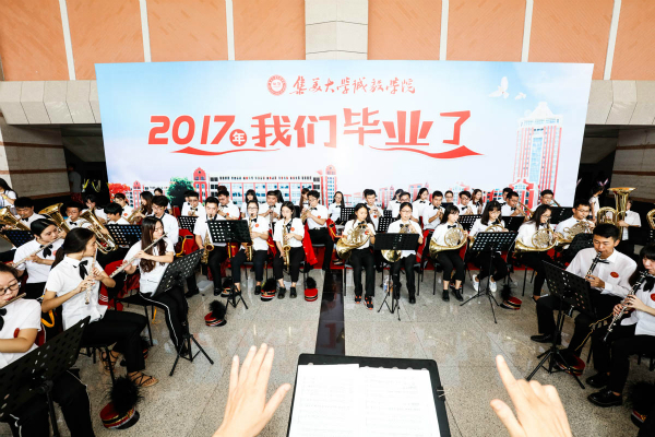 一支慷慨激昂的交響樂奏響了典禮的序曲,畢業(yè)生們紛紛在留言墻上簽字、合影留念,播放的畢業(yè)視頻勾起了大家對四年誠毅生活的溫馨回憶。