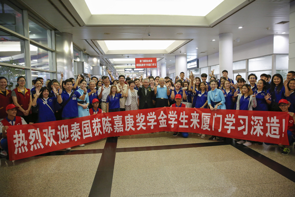 9月12日下午,來自泰國和菲律賓獲陳嘉庚獎學金資助的我校留學生抵達廈門高崎國際機場,副校長曹敏杰應集美學校泰國校友會的邀請,赴泰參加集美學校泰國校友會主辦的“歡送嘉庚學子赴祖國學習深造大會”,與泰國藉陳嘉庚獎學金學子同機抵達。校招生辦和海外教育學院師生代表到機場迎接。