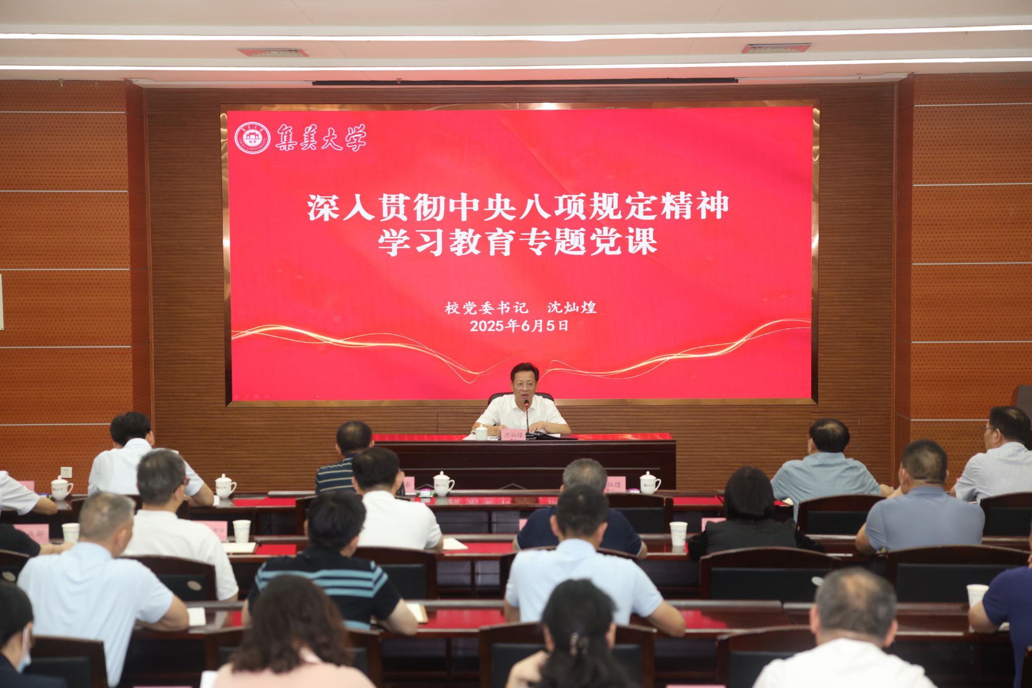 為深入貫徹中央八項規定精神學習教育,6月5日,校黨委書記沈燦煌在尚大樓108會議室講授專題黨課。全體校領導,機關部處、教輔機構主要負責人,各學院黨委書記、院長參加學習。