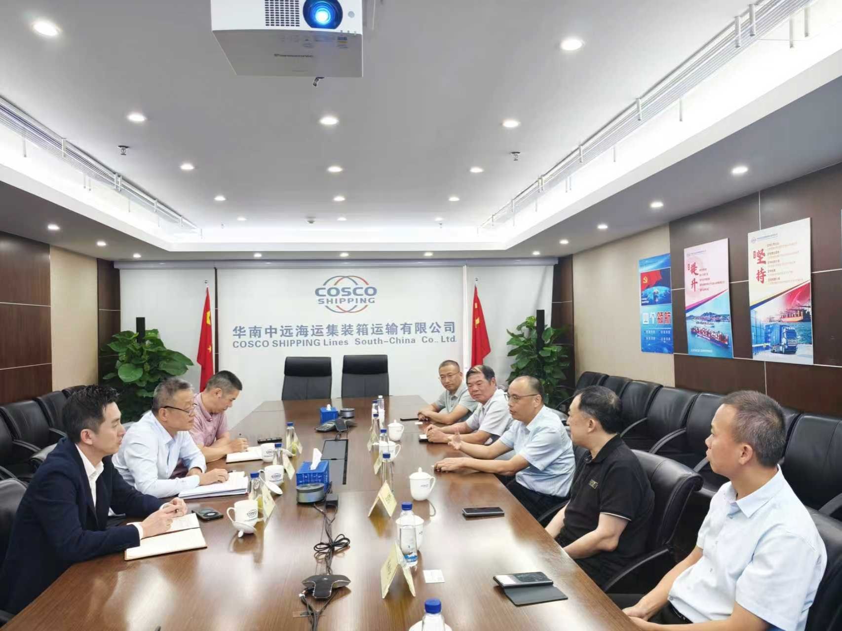 在華南中遠(yuǎn)海運(yùn)集裝箱運(yùn)輸有限公司,公司副董事長、黨委副書記黃新群,紀(jì)委書記楊真龍,副總經(jīng)理林斌與謝潮添一行座談。雙方圍繞智能航運(yùn)、綠色低碳智能船舶研制、高素質(zhì)船員培養(yǎng)、畢業(yè)生招聘等方面開展交流。
