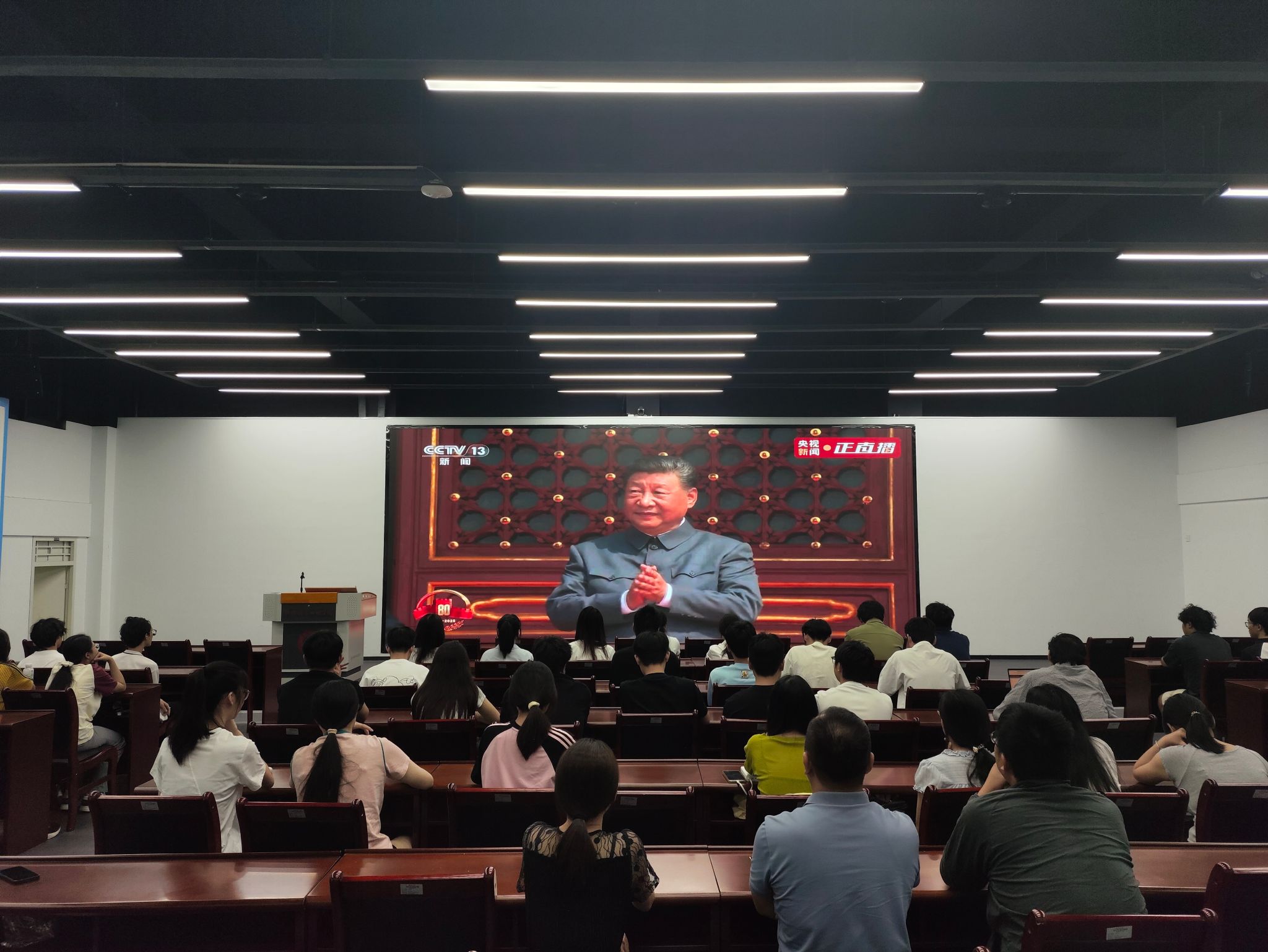 9月3日上午,紀念中國人民抗日戰爭暨世界反法西斯戰爭勝利80周年大會在北京天安門廣場舉行,我校2600余名師生齊聚校園,收看實況直播,共同見證這一莊嚴歷史時刻,共同緬懷先烈,感受偉大抗戰精神的磅礴力量。