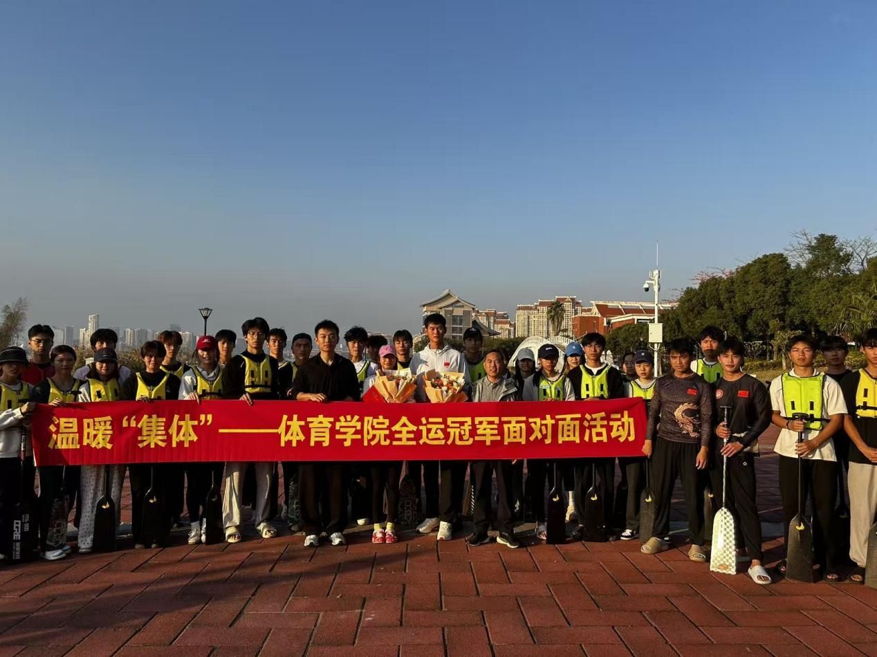 近日,體育學院在水上運動中心舉辦“冠軍面對面”龍舟體驗主題活動,各年級學生代表參與。院黨委副書記朱坤道出席活動并與同學們親切交流。