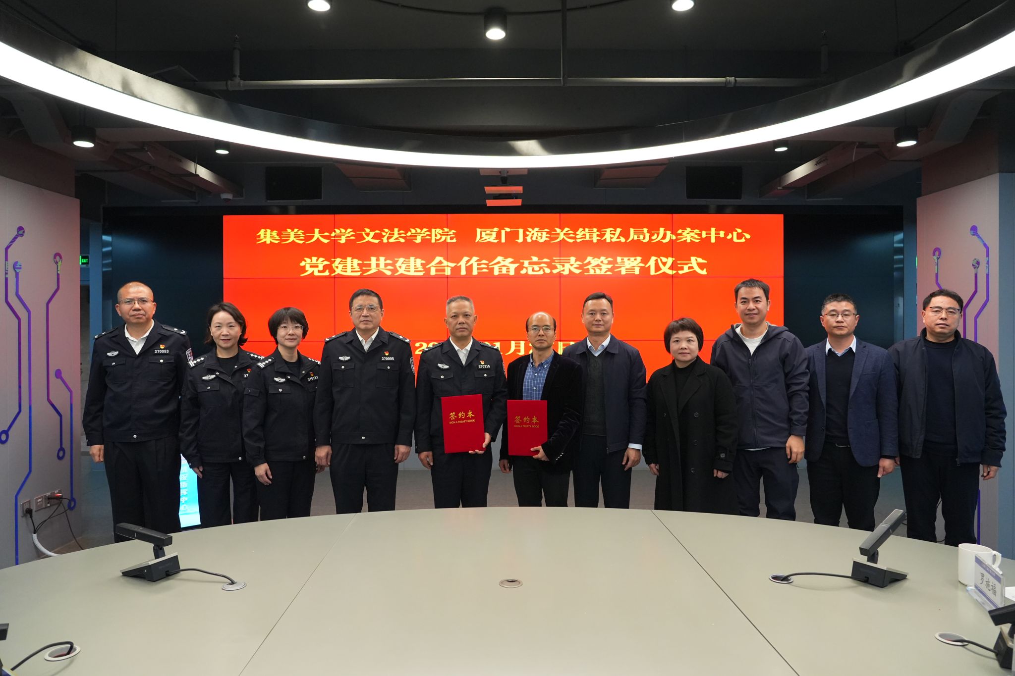 為深入學習貫徹黨的二十屆四中全會精神,深化警校合作,推動法治人才培養與緝私事業發展,1月27日上午,海洋文化與法律學院與廈門海關緝私局舉行“警校攜手 護航發展”黨建共建合作備忘錄簽署儀式。廈門海關緝私局局長楊曦,副局長陳文亮,海洋文化與法律學院黨委書記陳志鴻,副院長王惠蓉、羅施福,以及雙方相關部門負責人參加儀式。