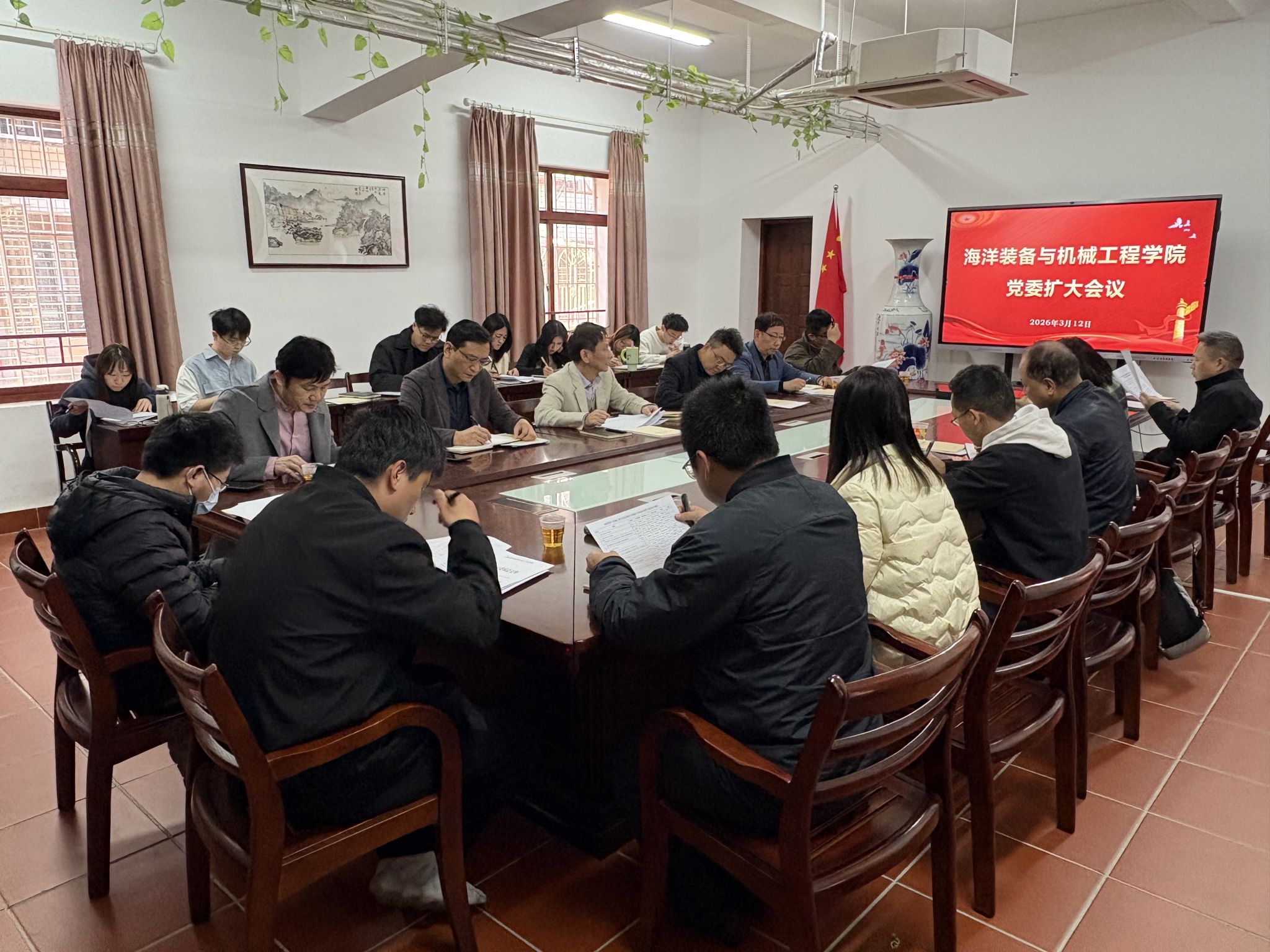 3月12日下午,海洋裝備與機械工程學院召開黨委擴大會議,部署啟動開展樹立和踐行正確政績觀學習教育工作。院黨委書記吳連星主持會議并作動員講話。院領導班子成員、黨委委員、全體黨支部書記參加會議。
