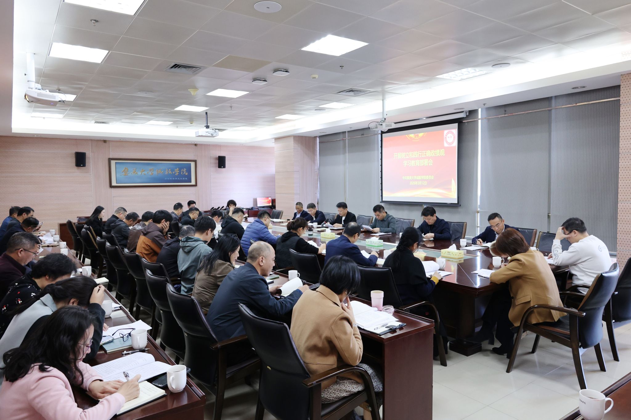會議要求,全院各級黨組織要把開展樹立和踐行正確政績觀學習教育作為重要政治任務(wù),要按照學院黨委制定的學習教育實施方案,明確重點任務(wù)、時間節(jié)點和工作要求,精心組織實施,一體推進學查改。一是深化學習研討。堅持個人自學與集中學習相結(jié)合,組織黨員、干部深入學習習近平總書記關(guān)于樹立和踐行正確政績觀的重要論述,不斷筑牢正確政績觀思想根基。二是對標對表查擺問題。對照習近平總書記重要論述、政績觀偏差問題清單及巡視巡察、審計監(jiān)督等反饋問題,深入查擺問題;結(jié)合實際,召開警示教育,引導師生黨員對照檢視、反躬自省、汲取教訓、引以為戒。三是整改整治破難題。將學習教育整改與學院“十五五”規(guī)劃編制實施等相結(jié)合,重點對照文件列出的8個方面突出問題列出清單、建立整改臺賬,推進整改落實。四是建章立制固長效。堅持當下改與長久立相結(jié)合,梳理修訂現(xiàn)行制度機制中不符合正確政績觀要求的規(guī)定,嚴格遵守議事決策規(guī)則,強化履職用權(quán)監(jiān)督,堅持正確用人導向,從思想和制度源頭防范政績觀偏差。五是開門教育聚合力。做好意見征求,接受師生監(jiān)督,確保學習成效。