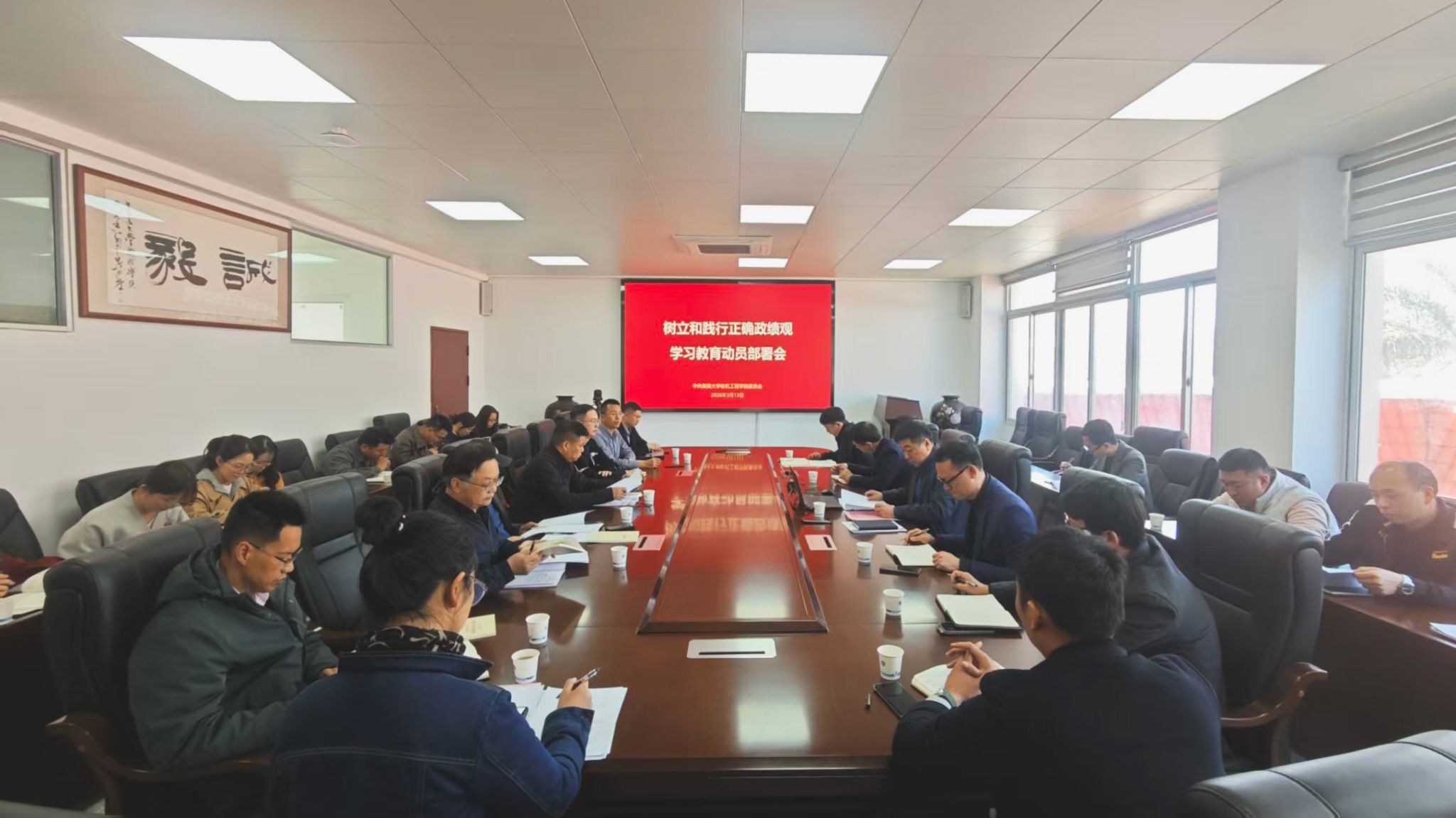會議強調,要以此次學習教育為契機,樹立正確的政績觀,全院上下要從思想上正本清源、在行動上對標對表:一要提高政治站位,在學深悟透中筑牢思想根基;二要聚焦重點任務,高標準高質量推進學習教育;三要堅持學用結合,把學習教育與學科建設、人才培養、師資隊伍建設、社會服務等中心工作緊密結合,推動正確政績觀融入辦學治院全過程。各黨支部要迅速行動,通過“三會一課”、主題黨日等形式開展專題學習研討,堅持學思用貫通、知信行統一,確保學習教育取得扎實成效。