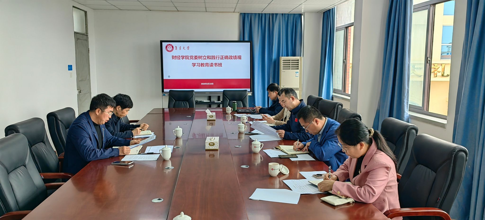 近日,財經學院黨委相繼召開樹立和踐行正確政績觀學習教育動員部署會,并舉辦學院領導班子第一期讀書班。全體院領導、各系主任及副主任、全體黨支部書記、科級干部、財經實驗教學中心負責人等參加動員部署會;全體院領導參加讀書班學習。