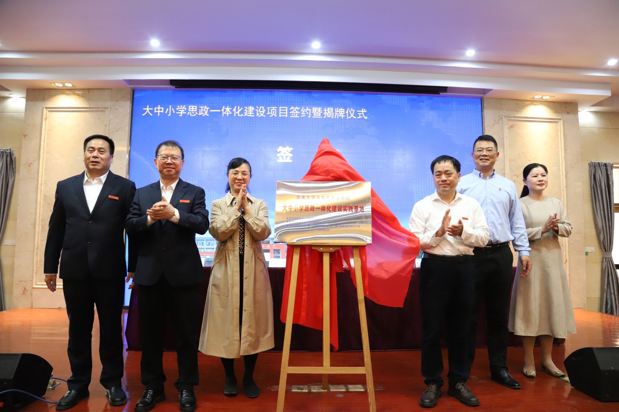 隨后,五方共同簽署《大中小學思政一體化建設合作協議書》,為“大中小思政一體化建設實踐基地”揭牌。此次簽約標志著五方正式構建起“高校+紅色基地+中職+小學”的思政育人共同體,為集美區思政一體化建設注入新活力,推動紅色基因代代傳承。