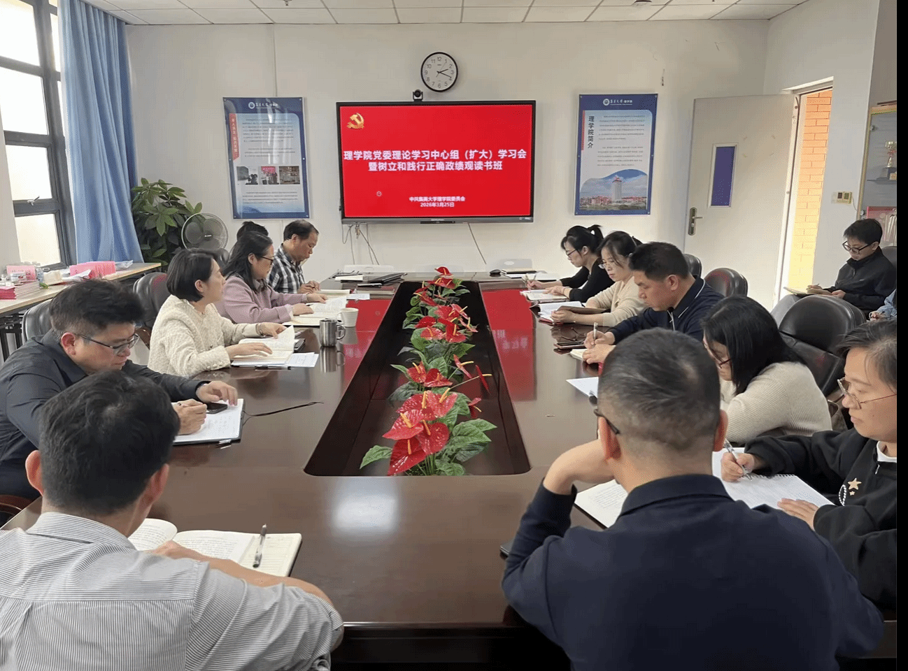 3月25日下午,理學院黨委召開樹立和踐行正確政績觀學習教育讀書班集體學習研討會。學院黨委理論學習中心組成員、全體黨支部書記參加會議,院黨委書記黃煜主持會議。