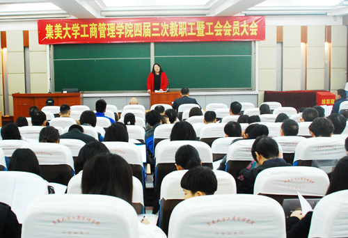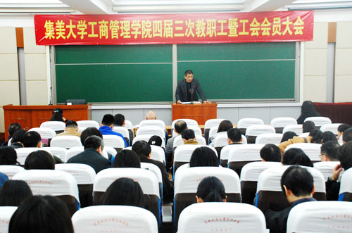 會前,學院黨委副書記匯報了會議籌備情況,宣讀了校工會關于同意召開工商管理學院四屆三次教代會暨工會會員大會的復函。