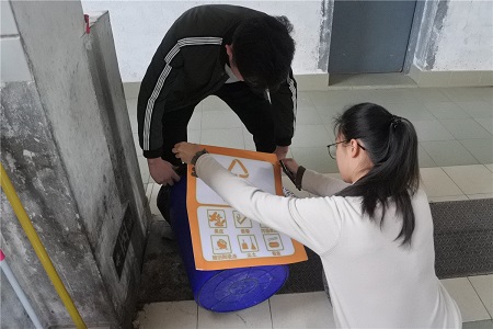 活動期間,學院骨干班學員分別前往引桐樓和集友樓,在各樓層、垃圾桶上張貼垃圾分類的標語;并深入宿舍宣傳垃圾分類知識,強調垃圾分類的重要性,倡議同學們親手完成一次垃圾分類,培養保護環境的意識和習慣。