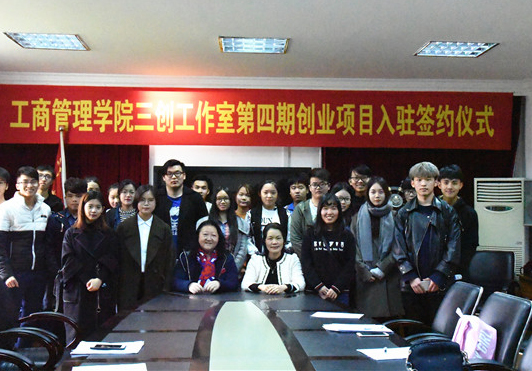 學院領導與創業團隊依次簽訂了《工商管理學院創新創業工作室入駐協議書》。