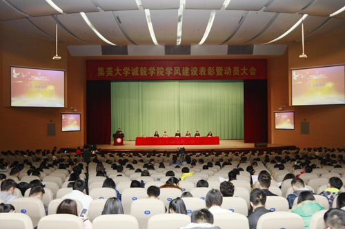3月15日,我校誠毅學(xué)院學(xué)風(fēng)建設(shè)表彰暨2017年“學(xué)風(fēng)建設(shè)月”系列活動(dòng)動(dòng)員大會(huì)在誠毅影劇院召開。學(xué)院院長葉光煌、副院長黃義新、黨委副書記連志崧,羅普特集團(tuán)總裁陳延行、臨家餐飲人事部有關(guān)領(lǐng)導(dǎo)出席會(huì)議。學(xué)院相關(guān)部門、各教學(xué)院系負(fù)責(zé)人、全體專任教師、輔導(dǎo)員和1000多名學(xué)生干部代表參加了大會(huì)。