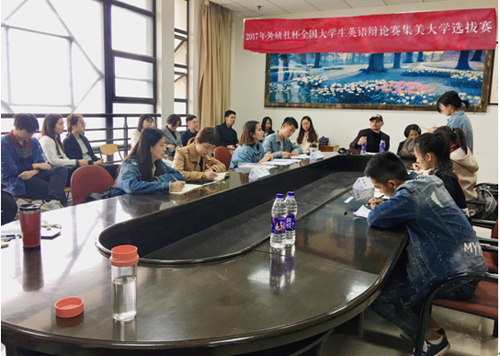 近日,外國語學(xué)院在漢水樓421舉辦2017年“外研社杯”全國大學(xué)生英語辯論賽集美大學(xué)選拔賽。四支隊(duì)伍經(jīng)過初賽的選拔晉級(jí)選拔賽。