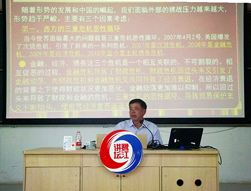 講座中,鄒文勇從今年“兩會”召開的時代背景和獨特意義、政府工作報告的架構和亮點和2017年經濟工作的重點內容與發展思路三個方面,全面講解了全國“兩會”概況;結合國內外發展形勢,生動地闡述了學習“兩會”精神的重要意義和深刻內涵。鄒文勇指出,當下我黨的工作重心在于堅持以人民為中心的發展思想、推進供給側結構性改革、加強宏觀調控、深化經濟體制改革,踐行五大發展理念,促進軍民深入融合。