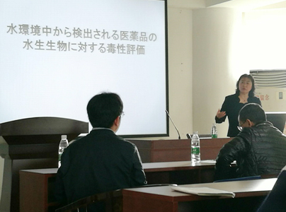 報(bào)告中,任惠峰講述了如何減少鰹魚(yú)在干制過(guò)程中造成的大量原材料的損失和如何去除制作過(guò)程中產(chǎn)生的多環(huán)芳香族碳?xì)浠衔锏戎掳┪镔|(zhì)的方法以及扇貝類軟體廢棄物中有毒有害物質(zhì)鎘的分離提取和再利用方法等內(nèi)容。任惠峰還介紹了東京海洋大學(xué)的基本情況,并與學(xué)院師生們進(jìn)行了交流討論。
