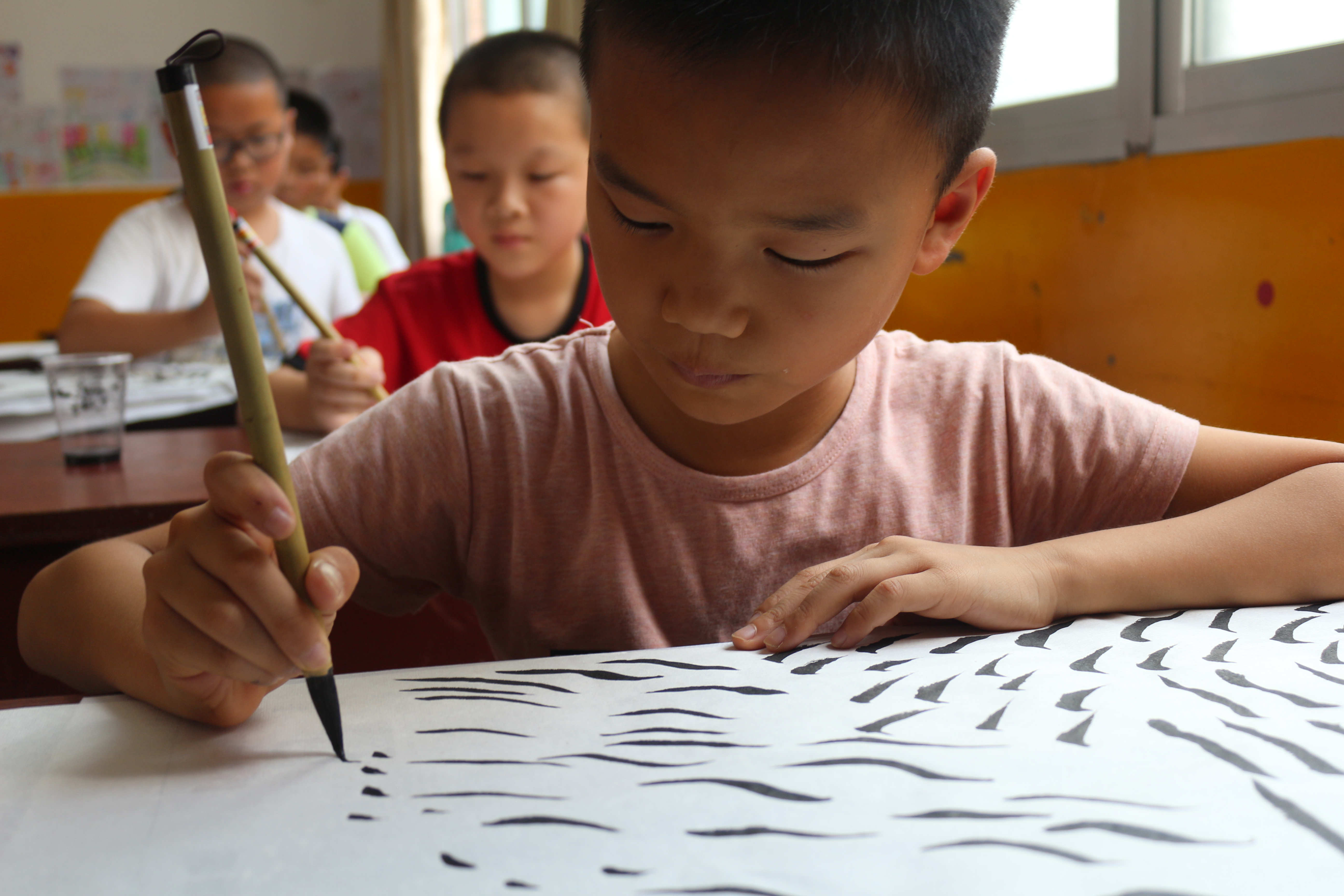 “握筆要對,身子要直,筆畫要反復(fù)練習才能把毛筆寫好。”中國青年網(wǎng)通訊員 任紫穎 攝