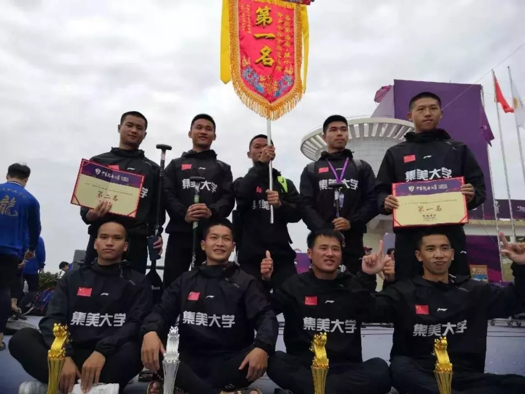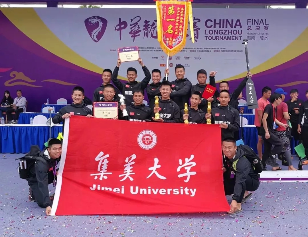 承載著全校師生、校友的期盼,集美大學龍舟隊不負眾望。2018中華龍舟總決賽,集美大學龍舟隊獲得青少年男子組100米直道賽第一,200米直道賽第一,500米直道賽第二,勇奪2018年中華龍舟大賽總決賽青少年男子組總冠軍。