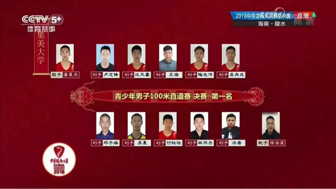 本屆賽事中,集大龍舟隊在分站賽中共斬獲3金、5銀、2銅、3個第四,作為本年度分站賽青少年男子組總積分第一的隊伍成功殺入決賽。經過激烈角逐,集大龍舟隊獲得青少年男子組100米直道賽第一、200米直道賽第一和500米直道賽第二,勇奪2018中華龍舟大賽青少年男子組總決賽冠軍。