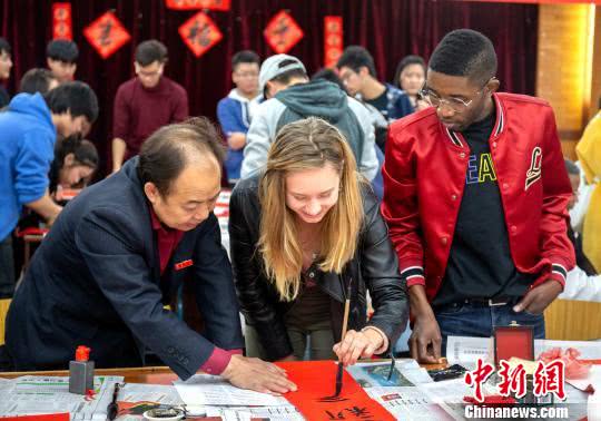日前,在位于廈門市的集美大學海外教育學院,外教和40余名留學生與當地書法家以及集美大學書法協會學生一起學習中國文化,并寫出了自己人生中的第一副春聯。