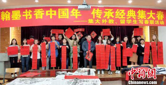 晨報訊(記者 宗琴 通訊員 林嫦娥)昨日,集美大學舉行“翰墨書香中國年 傳承經典集大春”活動,集大外教與40余名留學生在書法老師的帶領下,學習中國傳統春節文化,并寫出了自己人生中的第一副春聯。