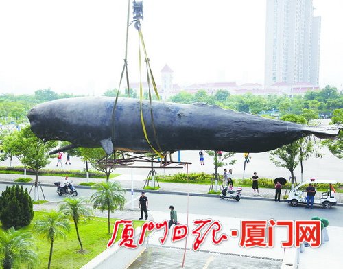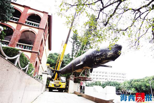 從鯨館“出來”的鯨魚,要搬到約2.5公里外的新校區中山紀念樓三樓自然科學館里。為了保證鯨魚能順利住進新家,搬遷時,廈門水陸生物研究院進行了現場指導,集大也調用了兩輛吊車和一輛拖車現場接力。
