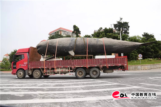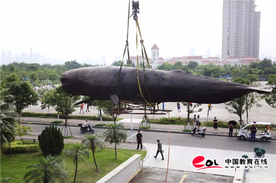 中國教育在線訊 5月21日,集美大學將一個長12.6米、重3噸的抹香鯨標本從機械與能源工程學院的鯨館,成功搬遷至約2.5公里外的新校區中山紀念樓三樓自然科學館。