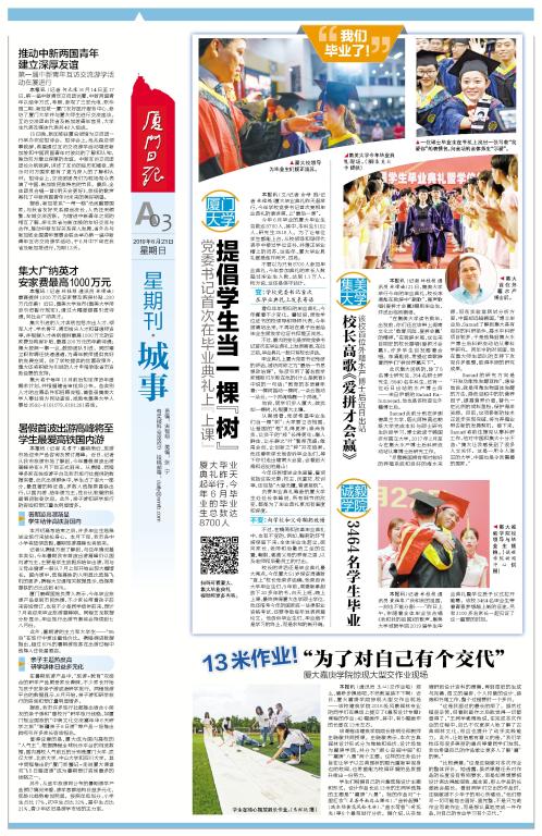海西晨報:《校長清唱閩南歌勉勵畢業生 集大舉行2019屆學生畢業典禮送別6199名學子》
