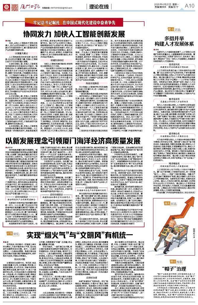 創新是引領海洋經濟高質量發展的第一動力。2020年,廈門市出臺《關于促進海洋經濟高質量發展的若干措施》,明確提出打造創新型的海洋科技新高地。數據顯示,2020年以來,廈門海洋戰略性新興產業增加值年均增速達11.3%。廈門應進一步發揮海洋科技創新的顯著優勢,加快培育壯大海洋新質生產力,推動海洋科技創新和產業創新深度融合。