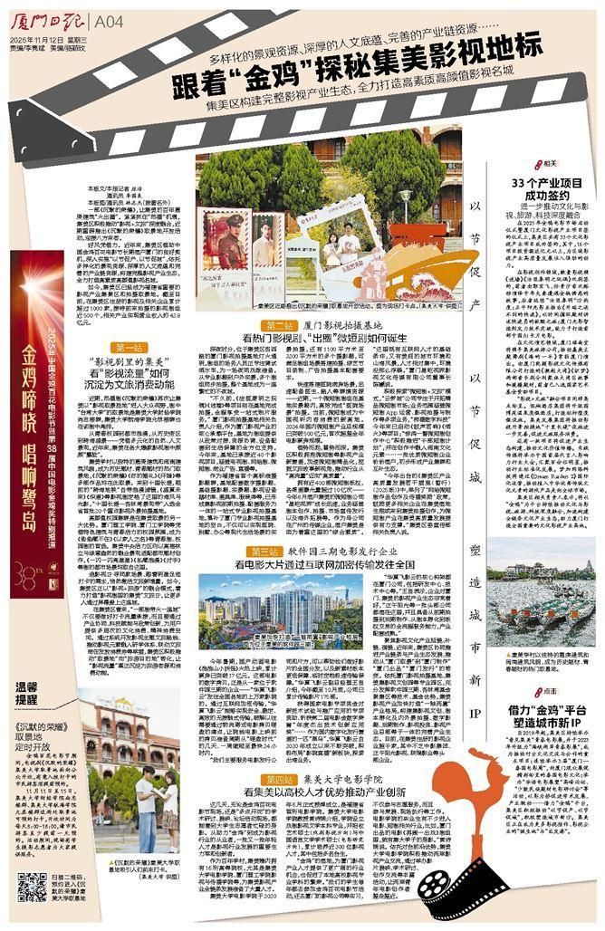 集美區(qū)相關(guān)負(fù)責(zé)人表示,將以“金雞”為平臺持續(xù)推動文化與影視、旅游、科技深度融合,加速構(gòu)建全鏈條文化產(chǎn)業(yè)生態(tài),助力廈門打造全國重要的文化影視產(chǎn)業(yè)高地。