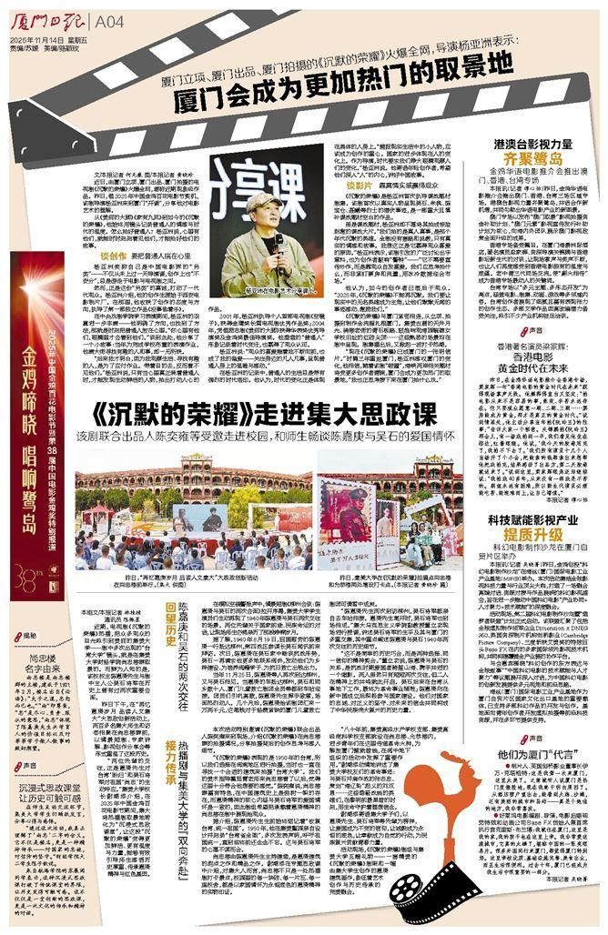 “兩位先輩的交往,正是嘉庚先生對臺灣‘盼歸’和吳石將軍對祖國‘尚忠’的生動呼應。”集美大學校長謝潮添介紹,在2025年中國金雞百花電影節期間,集大將熱播劇取景地轉化為“沉浸式思政課堂”,讓這段“沉默的榮耀”變得更加鮮活、更有溫度與力量,能夠有效引導師生感悟歷史厚重、傳承嘉庚精神與紅色基因。