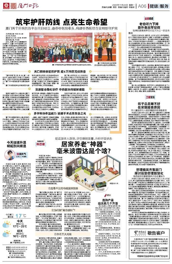 “毫米波雷達(dá)就像一個(gè)‘精準(zhǔn)的振動(dòng)探測(cè)器’,可隔著障礙物‘捕捉’人體的動(dòng)靜,實(shí)現(xiàn)隔空監(jiān)測(cè)。”高志斌說。